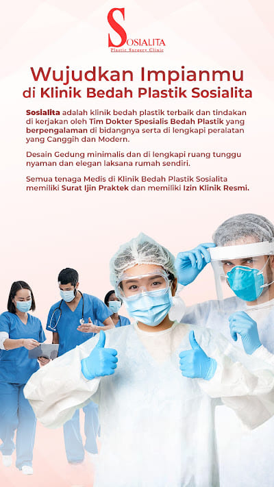 Klinik Bedah Sosialita adalah klinik kecantikan terpercaya yang telah membantu mengatasi banyak permasalahan wanita maupun pria untuk mendapatkan penampilan yang lebih estetik dan menarik. Klinik Bedah Sosialita memiliki dokter-dokter bersertifikasi internasional dan kompeten di bidangnya, dengan pengalaman lebih dari 8 tahun di bidang bedah plastik dan estetika.